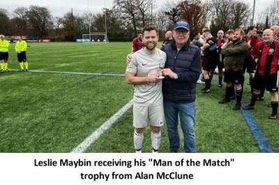 On Saturday 7th June 2025 we hosted a now annual Army Vets triangular competition for the “Frank Hewitt Memorial Trophy”. Frank had been a hard working trustee for the Army veterans. In the semifinal we beat a guest team Dunmurry YM to replace Tri-Service who unfortunately couldn’t be facilitated by 3 goals to nil and in the final we beat the organising AAVS by 6 goals to 2. Other beaten semifinalists were 152 North Irish Vets. We supplied a buffet after the matches were trophies were handed out, and we also received “Player of the Tournament” which was jointly shared by William Wharry and Mattie Holden.